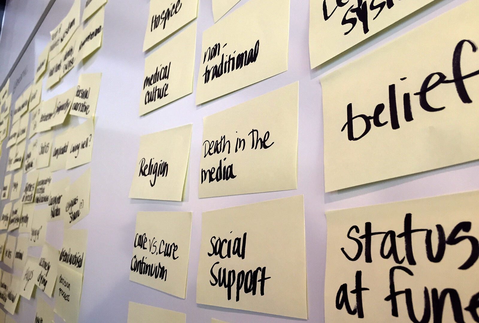 During the October 19 session, our process for generating and categorizing aspects of palliative care was driven by three discrete qualities of palliative care: formal, experiential, and systems. These classifications were broad enough to spark conversation between about ten participants.